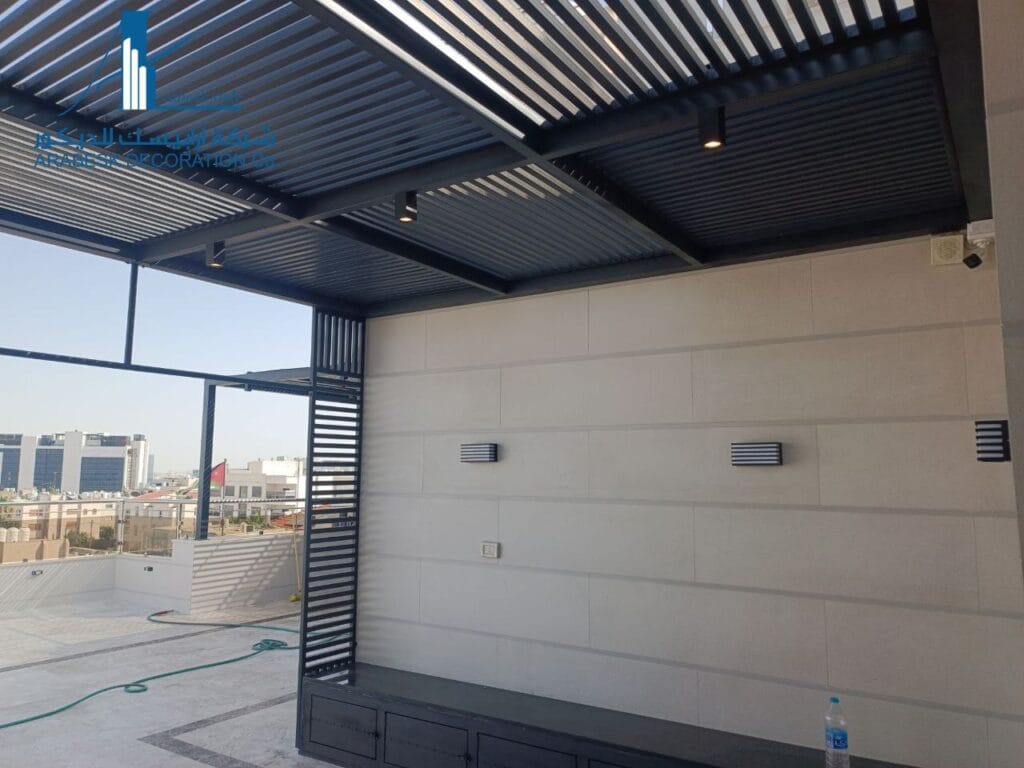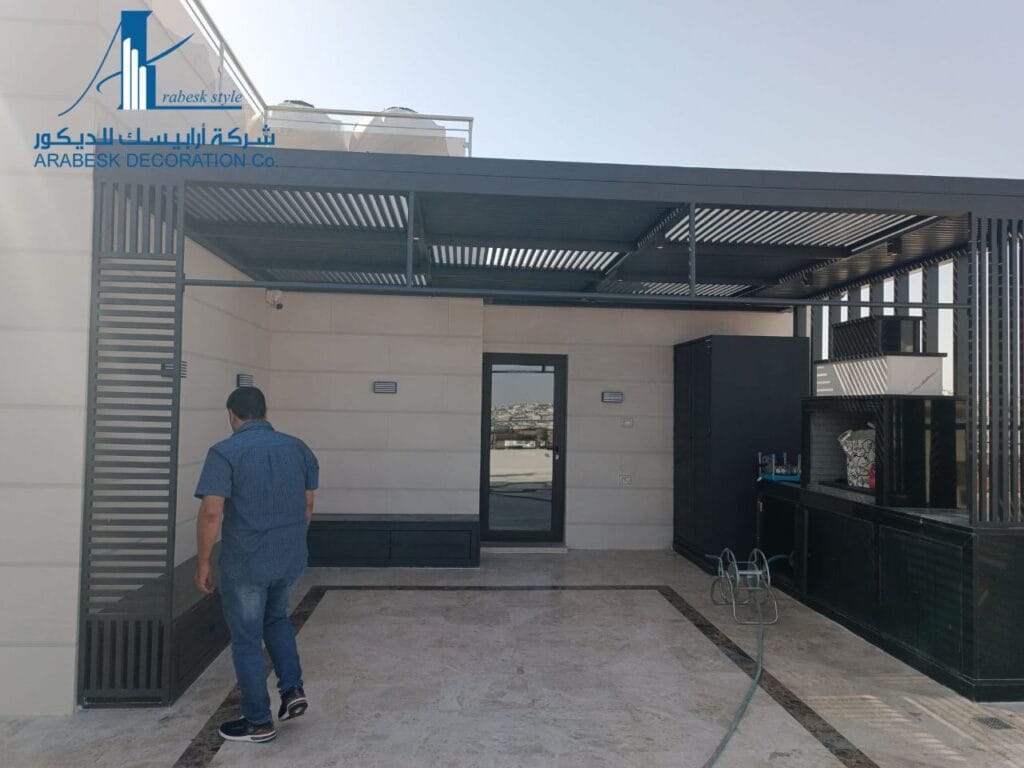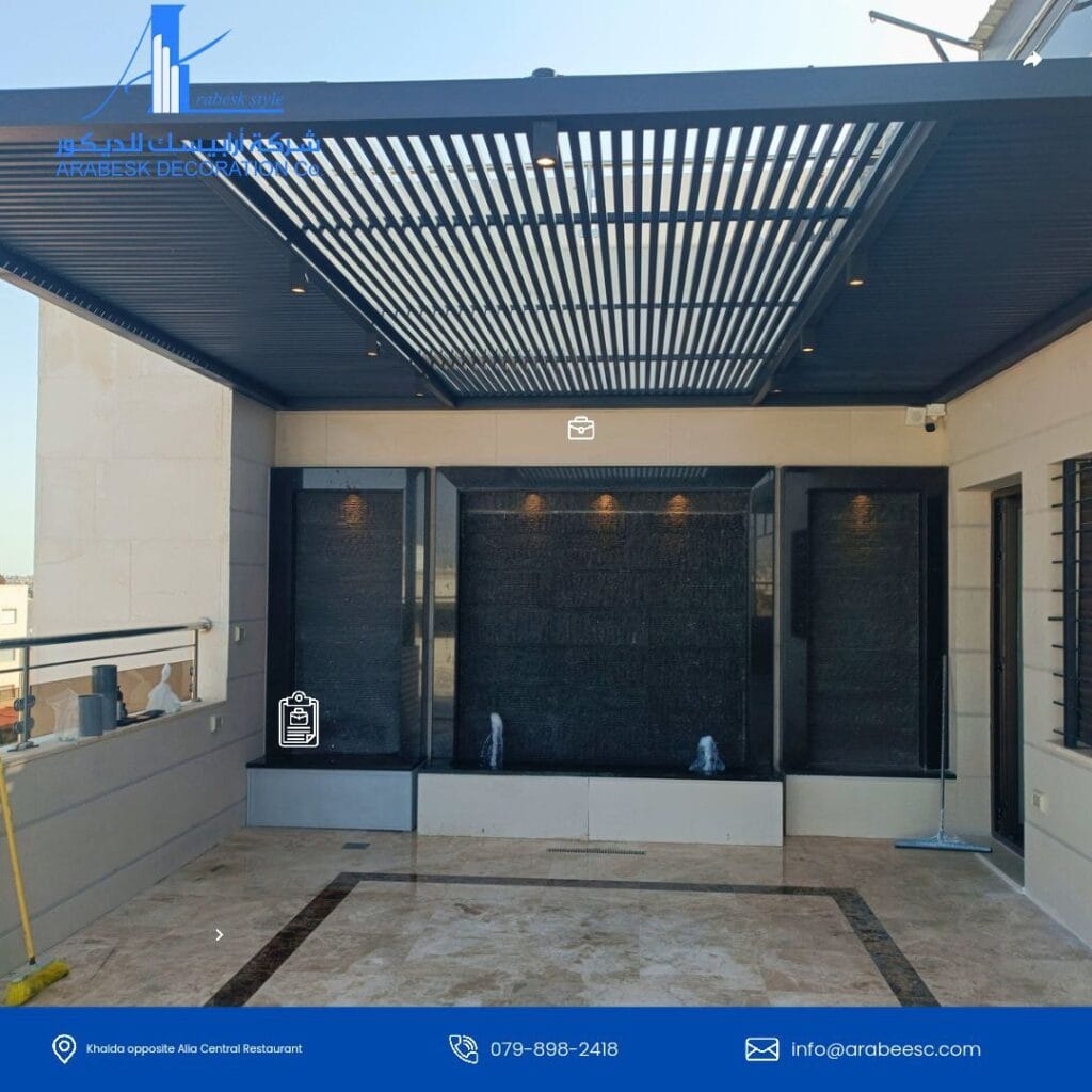 مكنت شركة أرابيسك من تحويل سطح المنزل إلى واحة من الهدوء والجمال من خلال تنفيذ مشروع دقيق وشامل. فقد اختارت بعناية أنواع بلاط متينة ومقاومة للعوامل الجوية لتكسية السطح، مع مراعاة الألوان والتصاميم التي تتناسب مع الطراز العام للمنزل. كما أضافت لمسة فنية مميزة من خلال تصميم شلال مائي ساحر، حيث تم اختيار موقعه بعناية لضمان تدفق الماء بشكل طبيعي وهادئ، مما يخلق أجواءً من الاسترخاء والانتعاش.