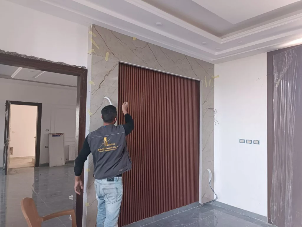 نجح استخدام بديل الرخام للجدران في ديكور الصالات والمجالس وغيرها، شركة ارابيسك للديكور تركيب جميع اعمال الديكور و التشطيب الداخلي والخارجي جديد من شركة ارابيسك تركيب ديكورات بديل الرخام مع شرحات اكريليك شبيه الخشب او شرحات pvc.